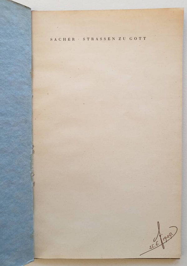 Mit persönlicher Signatur von Friedrich Sacher 1929.