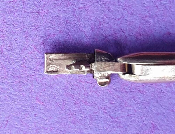 Gehäuse und Band 14kt 585 Gold, Punzierung auf Band und Gehäusedeckel Innenseite. Beschädigung auf Gehäuserand rechts oben.
