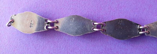 Armband mit 8 mittel- bis dunkelblauen matten Steinen auf Silberplatte und Zierfassung. 925 Silber.