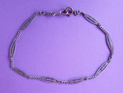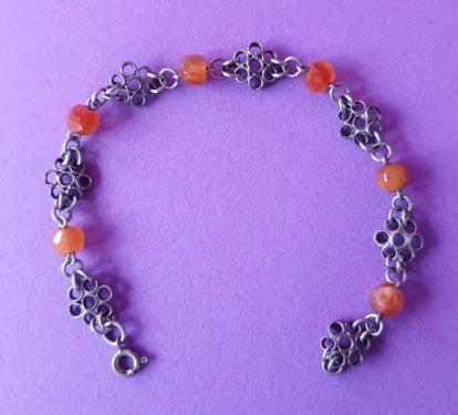 8-gliedriges zartes und wunderbar verspieltes Armband aus 925 Silber aus einer Freiburger Edelsteinschleiferei, Stein vmtl. Rubin