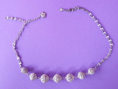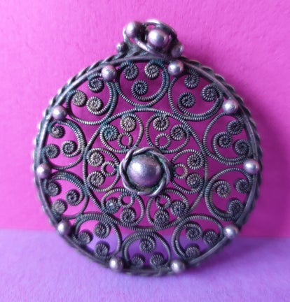 Halskette mit einem 5 cm großen zentralen Anhänger aus 835 Silber und wunderschön gearbeiteten durchbrochenen Ziereelementen